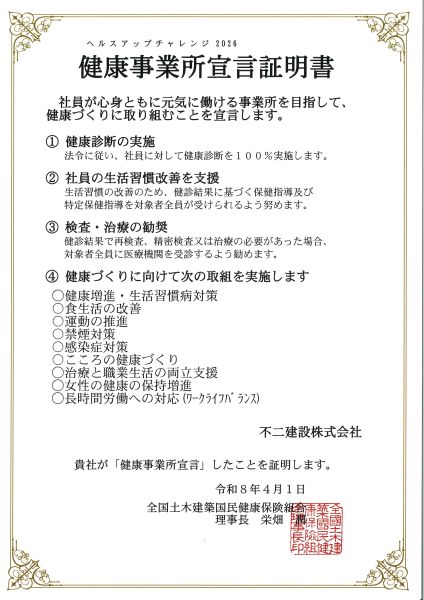 また、『ヘルスアップチャレンジ2026健康事業所宣言』をいたしました。