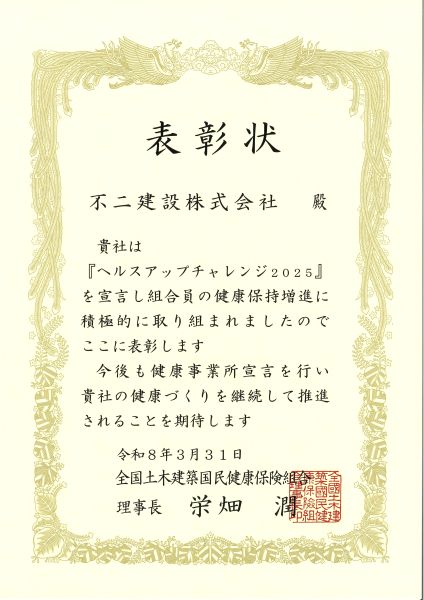 全国土木建築健康保険組合から表彰を受けました。